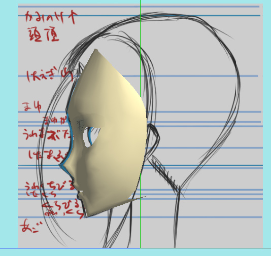 横から見た絵と調整かけて、3Dと2Dの差異を落とし込み。