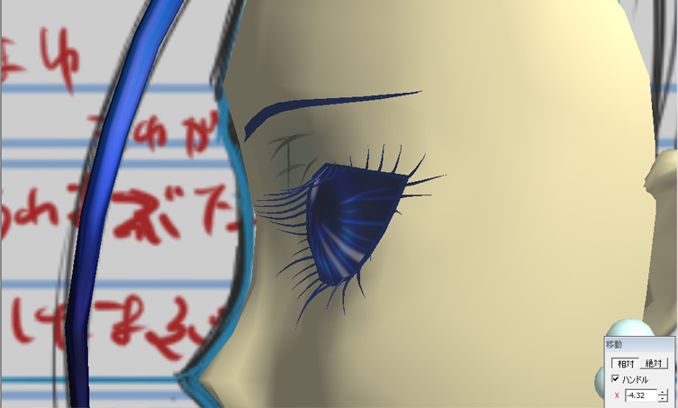 pngファイル使ってテクスチャですませればいい所を、(いつも変な所で発動する)こだわりによりビシバシレンダリング睫毛。